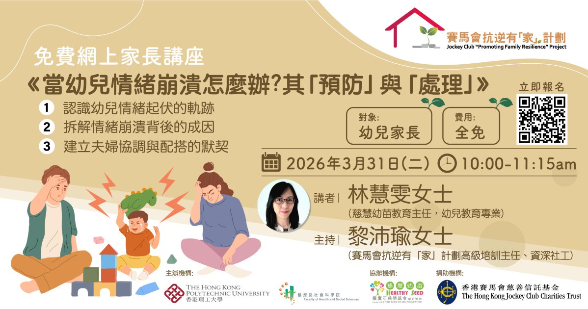 【免費網上家長講座】當幼兒情緒崩潰怎麼辦?其「預防」與「處理」