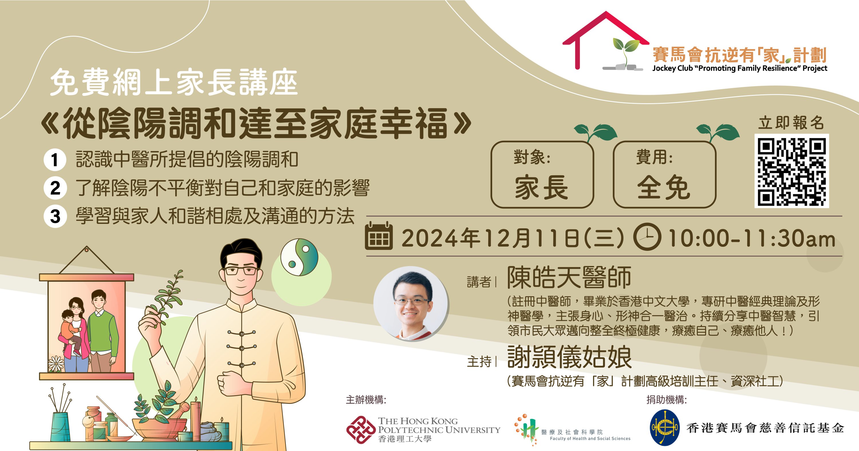 - 【免费网上家长讲座】从阴阳调和达至家庭幸福