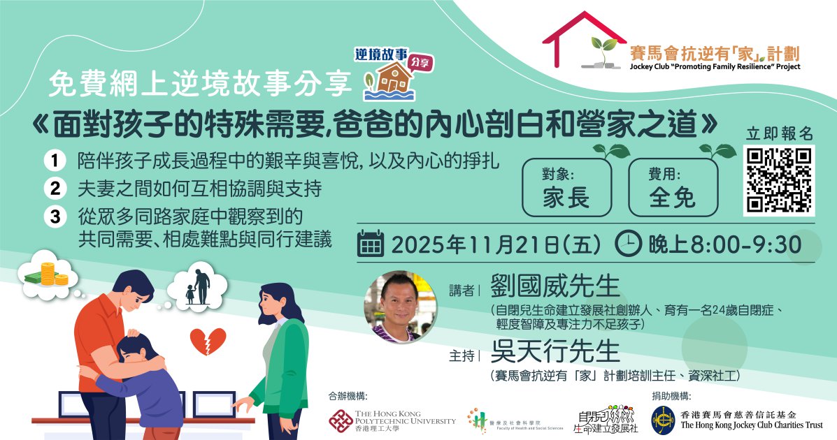 【免費網上逆境故事分享】家庭遇上SEN系列《面對孩子的特殊需要,爸爸的內心剖白和營家之道》