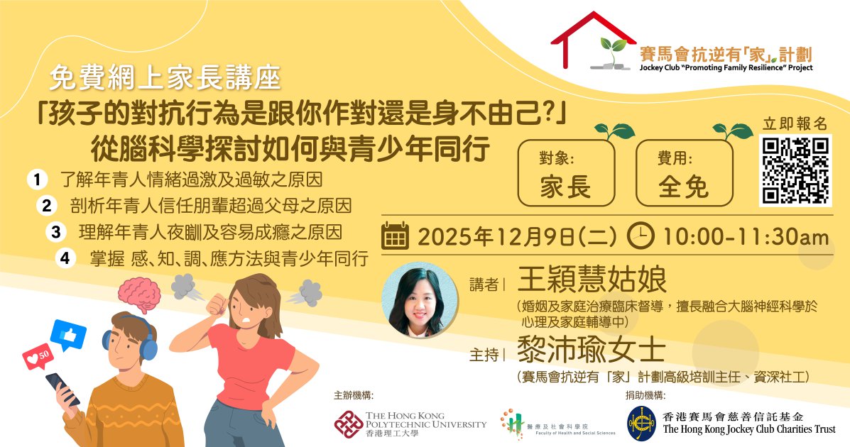 【免費網上家長講座】《「孩子的對抗行為是跟你作對還是身不由己?」從腦科學探討如何與青少年同行》