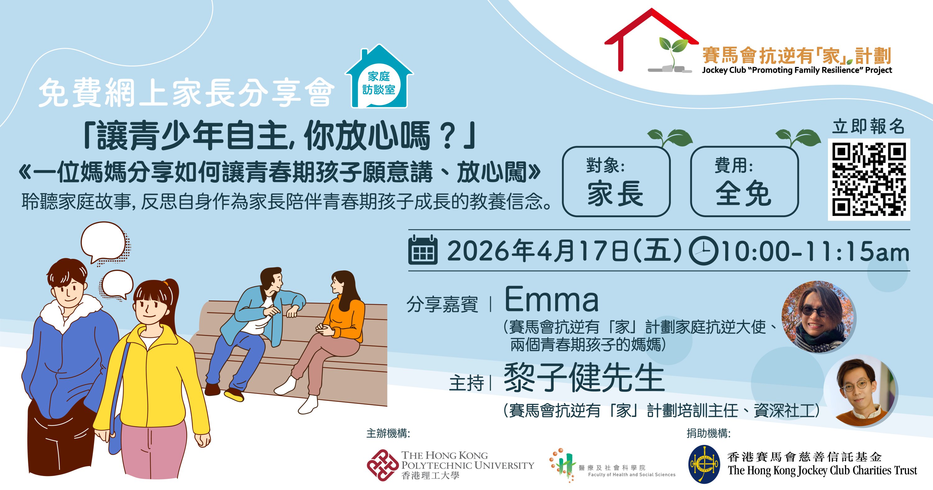 【免費網上家長分享會】「讓青少年自主,你放心嗎?」一位媽媽分享如何讓青春期孩子願意講、放心闖