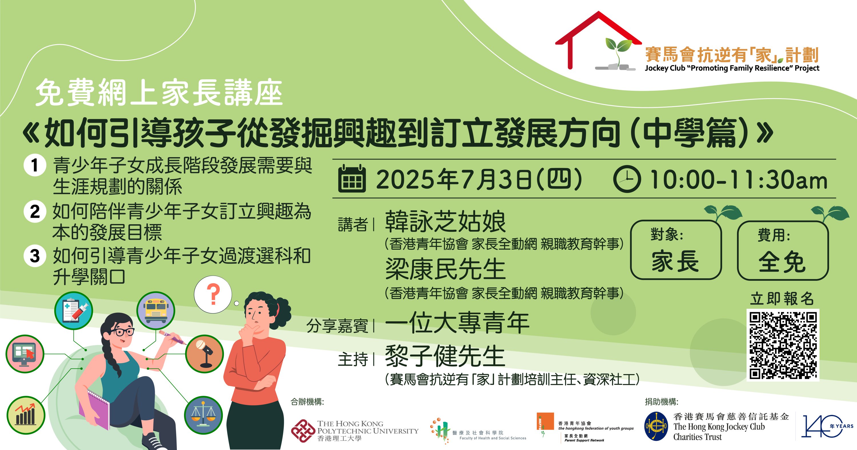 - 【免費網上家長講座】《如何引導孩子從發掘興趣到訂立發展方向(中學篇)》
