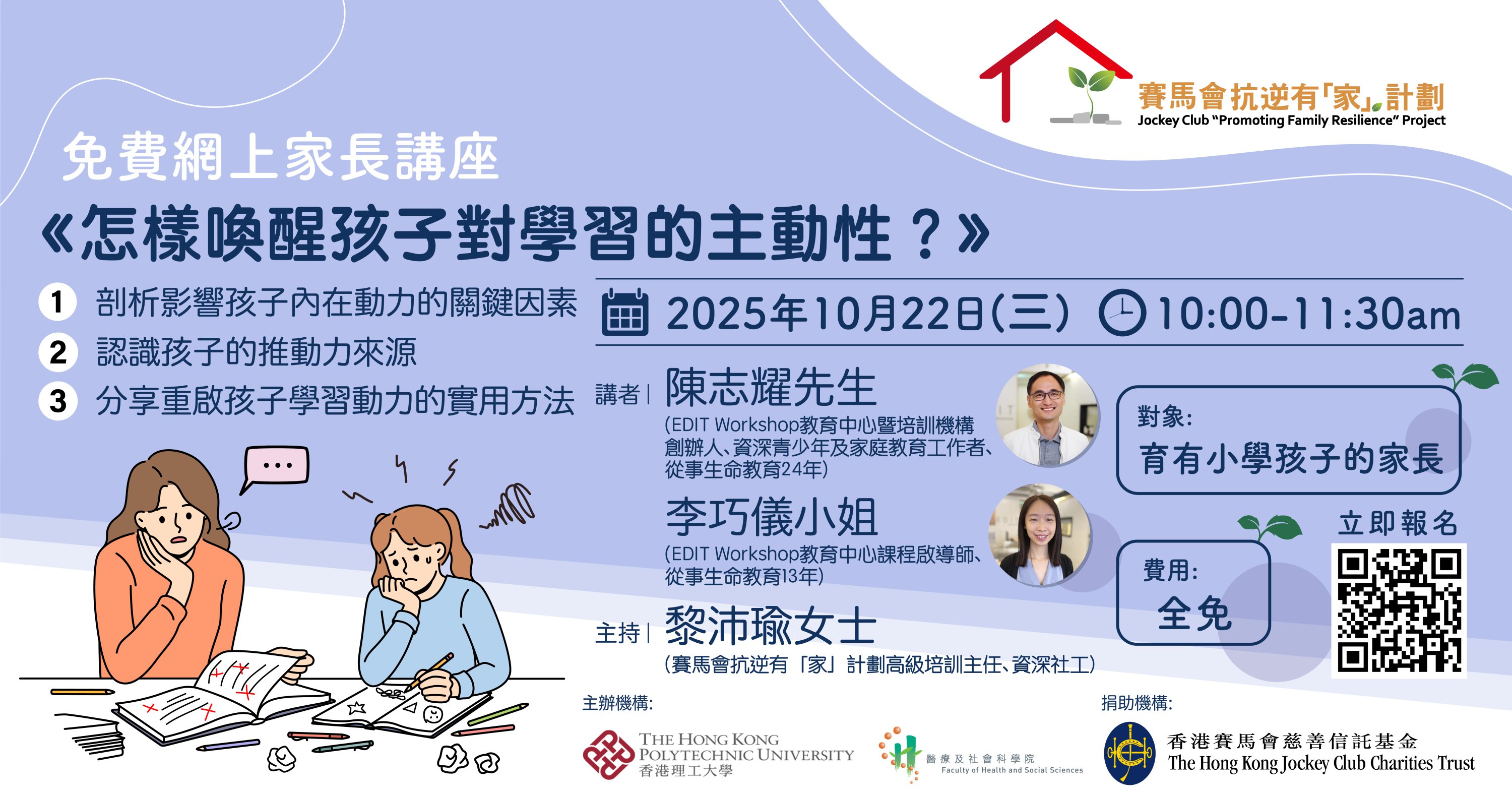 - 【免費網上家長講座】《怎樣喚醒孩子對學習的主動性?》