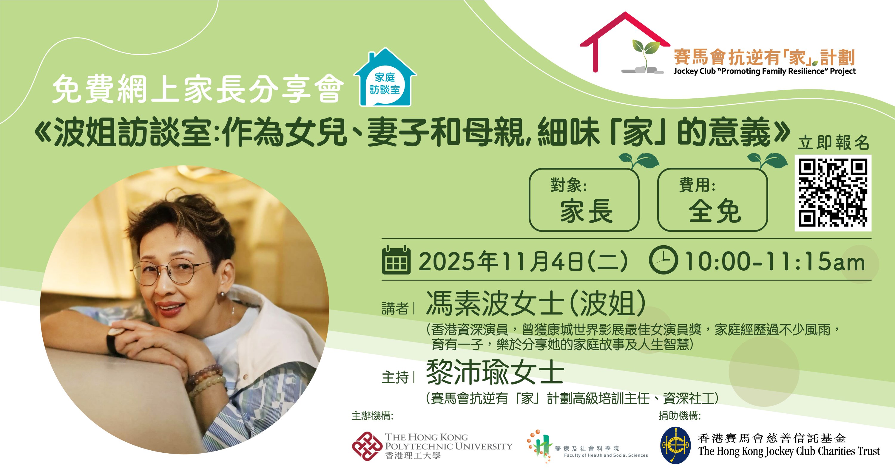 - 【免費網上家長分享會】《波姐訪談室:作為女兒、妻子和母親,細味「家」的意義》