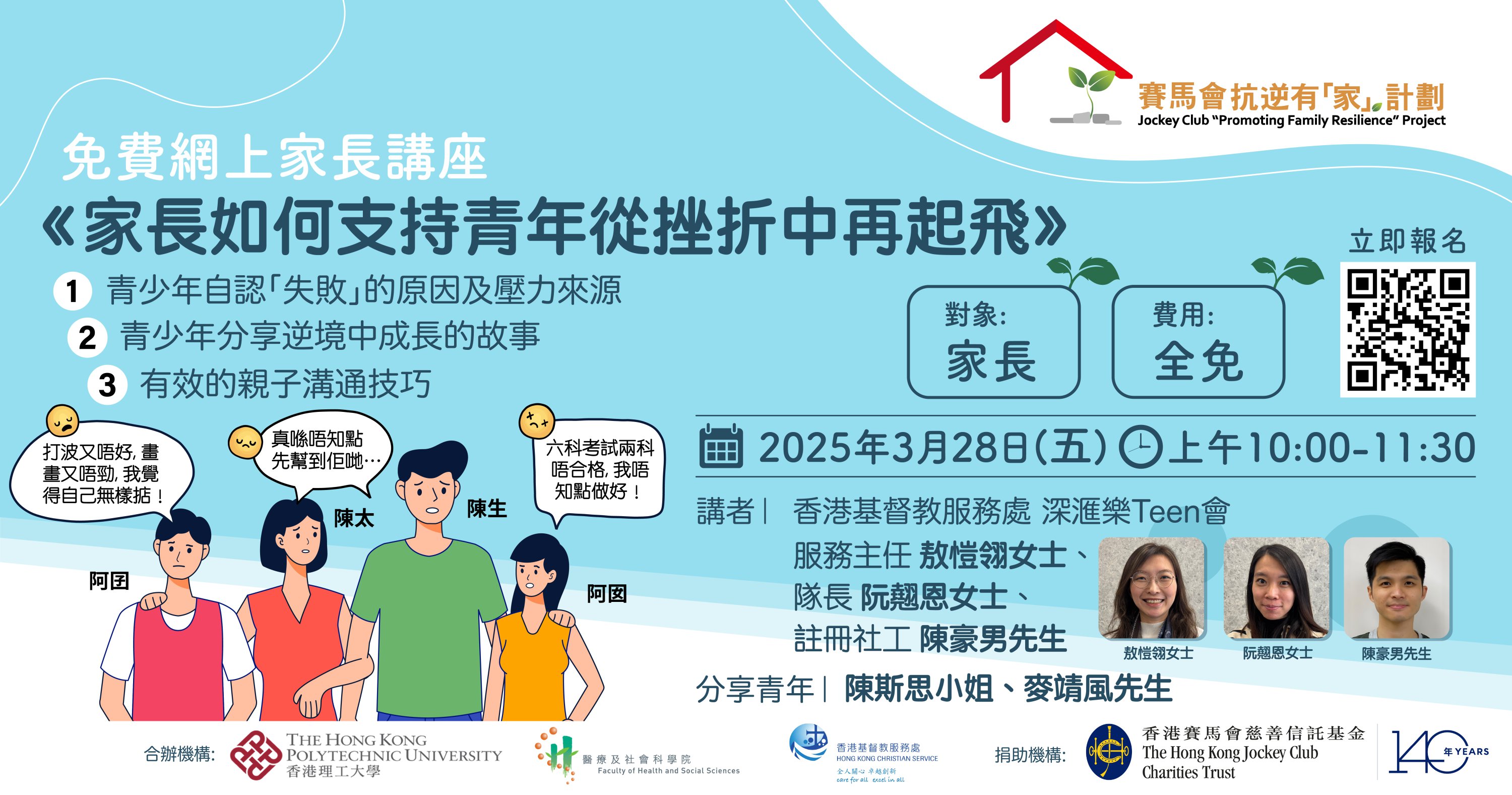 【免費網上家長講座】《家長如何支持青年從挫折中再起飛》
