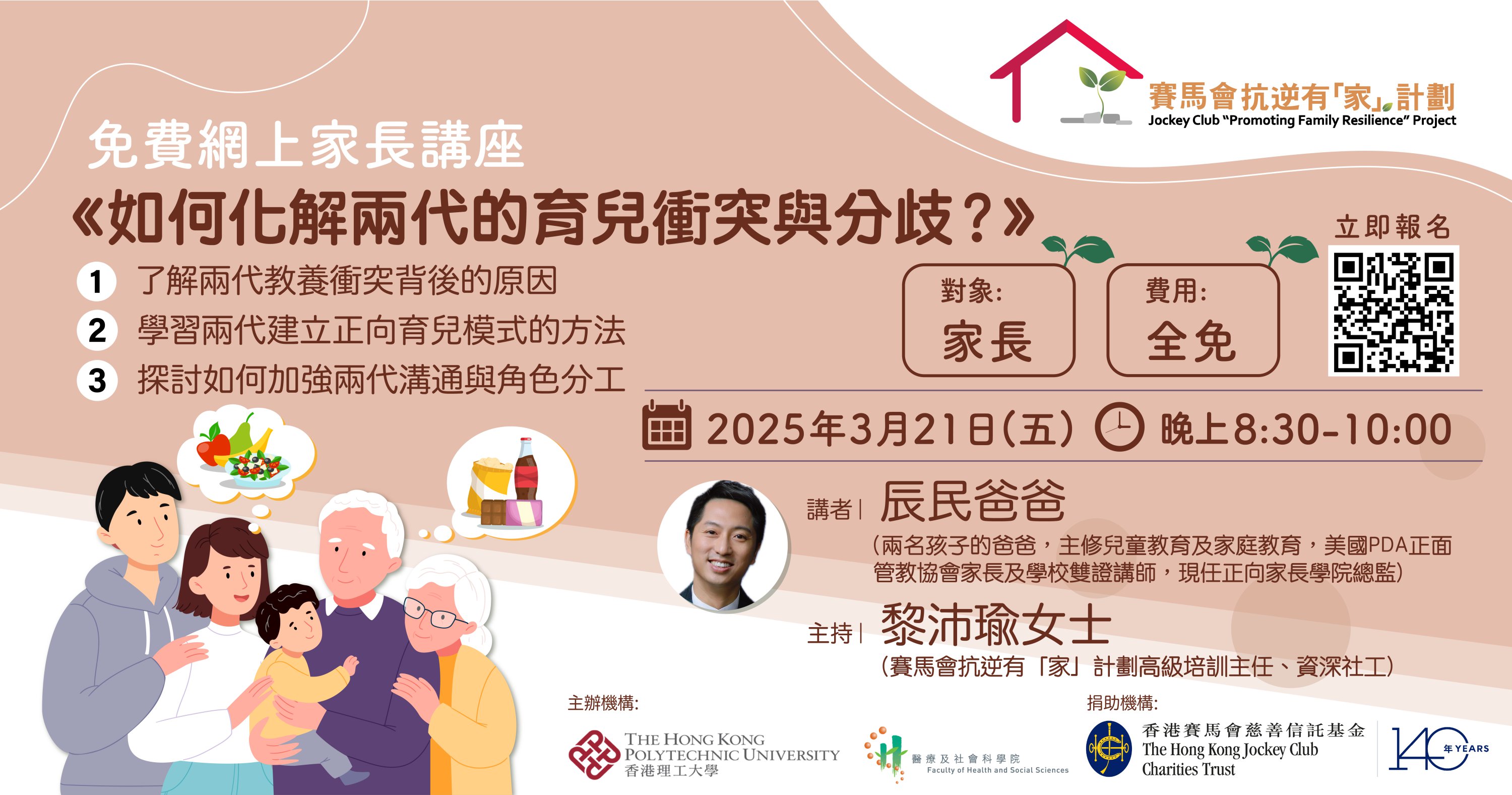 【免費網上家長講座】《如何化解兩代的育兒衝突與分歧?》
