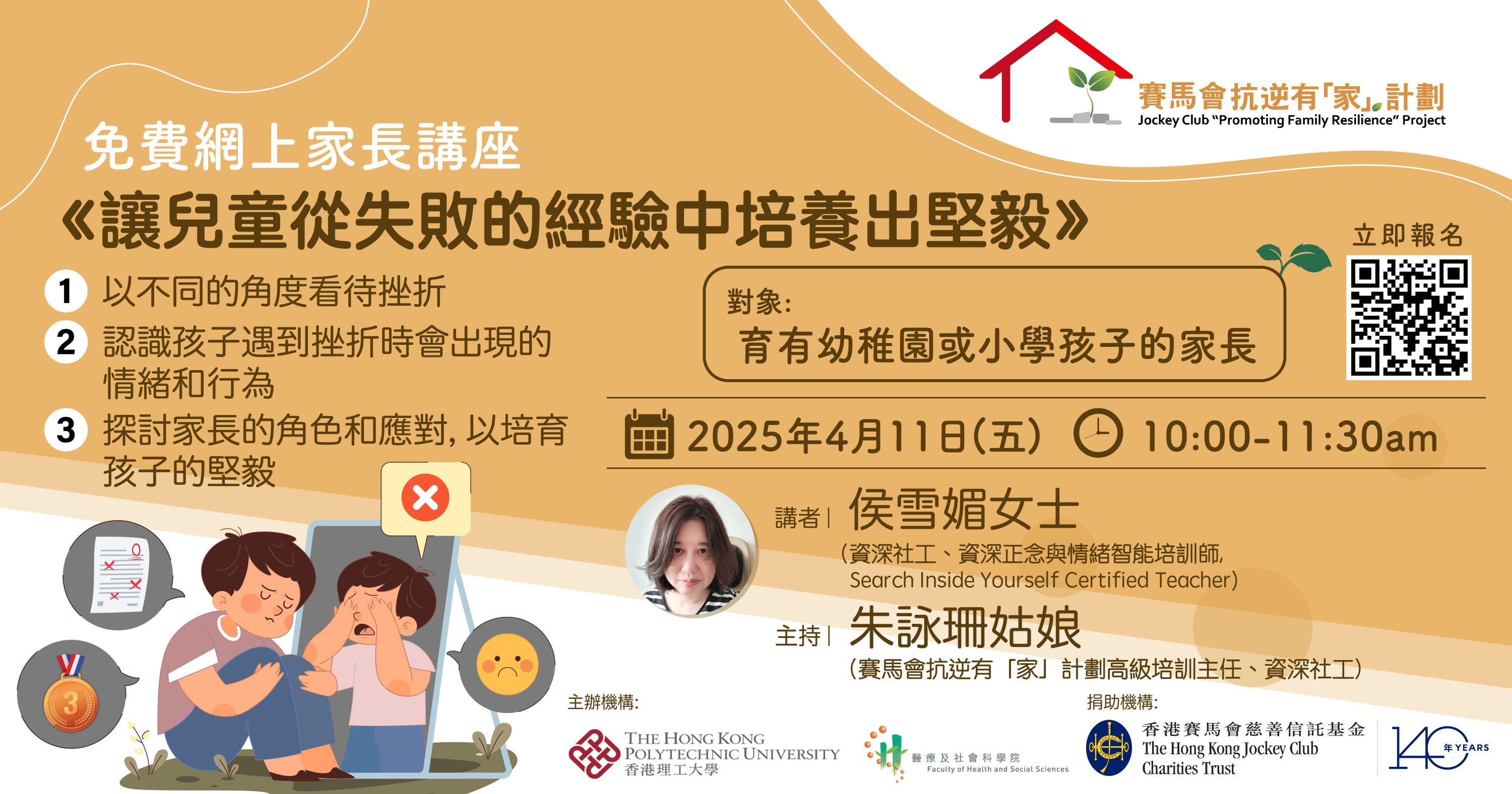 【免費網上家長講座】《讓兒童從失敗的經驗中培養出堅毅》
