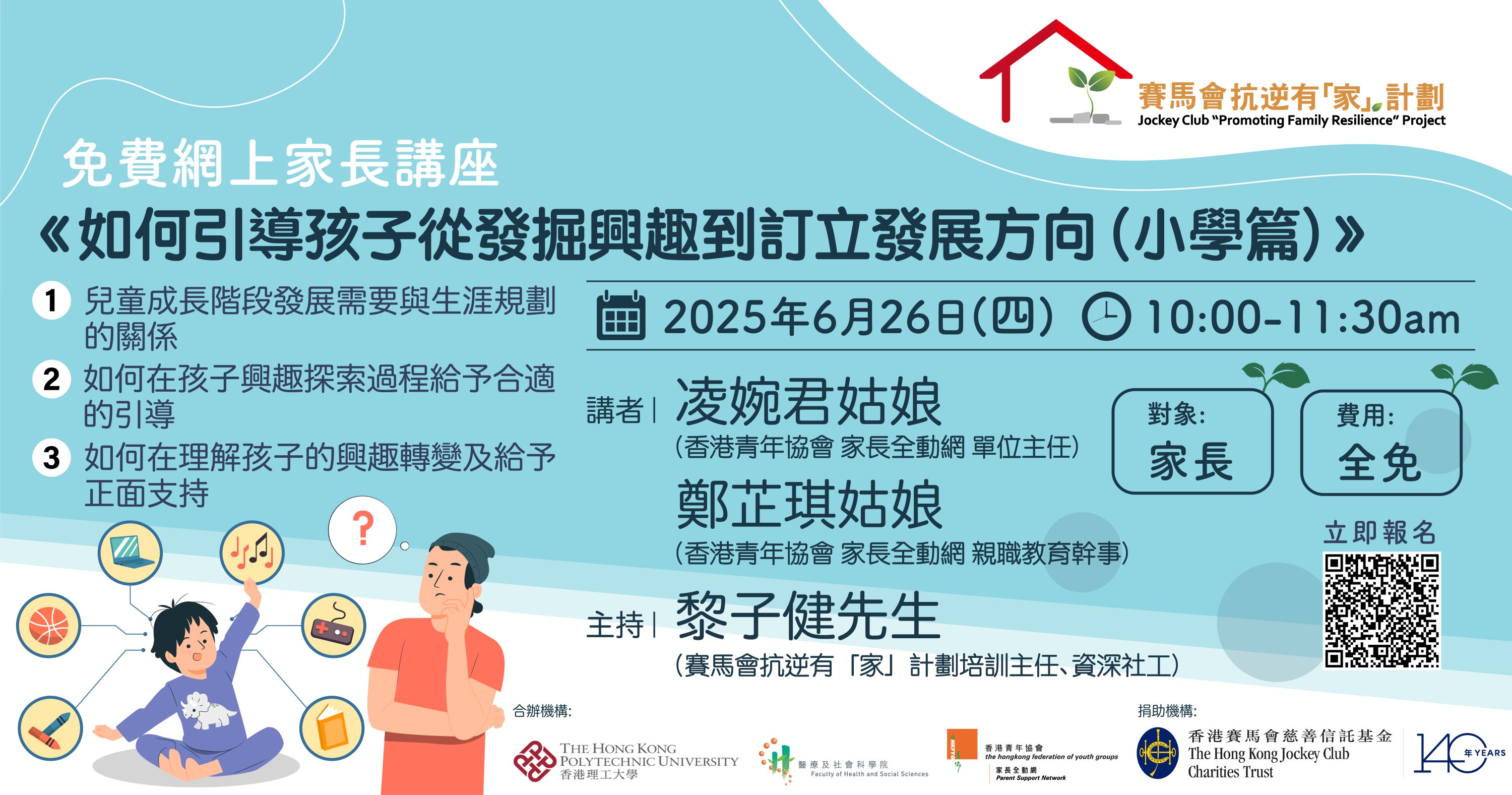 【免費網上家長講座】《如何引導孩子從發掘興趣到訂立發展方向(小學篇)》