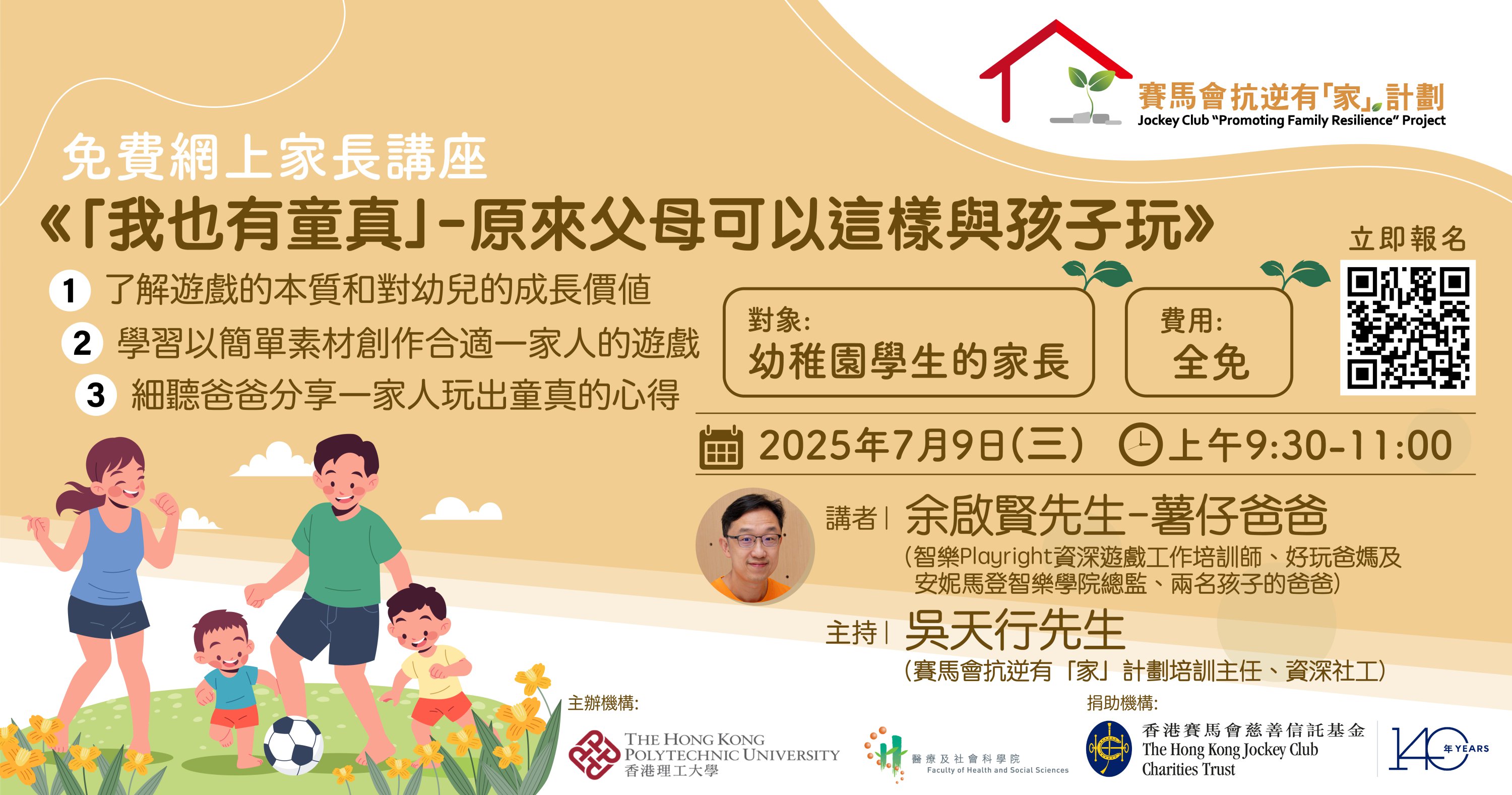 【免費網上家長講座】《「我也有童真」—原來父母可以這樣與孩子玩》