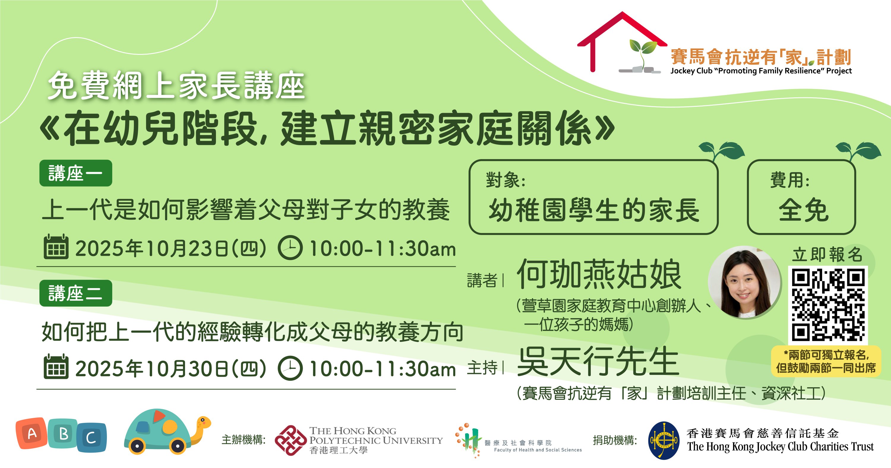 【免費網上家長講座】《在幼兒階段,建立親密家庭關係》