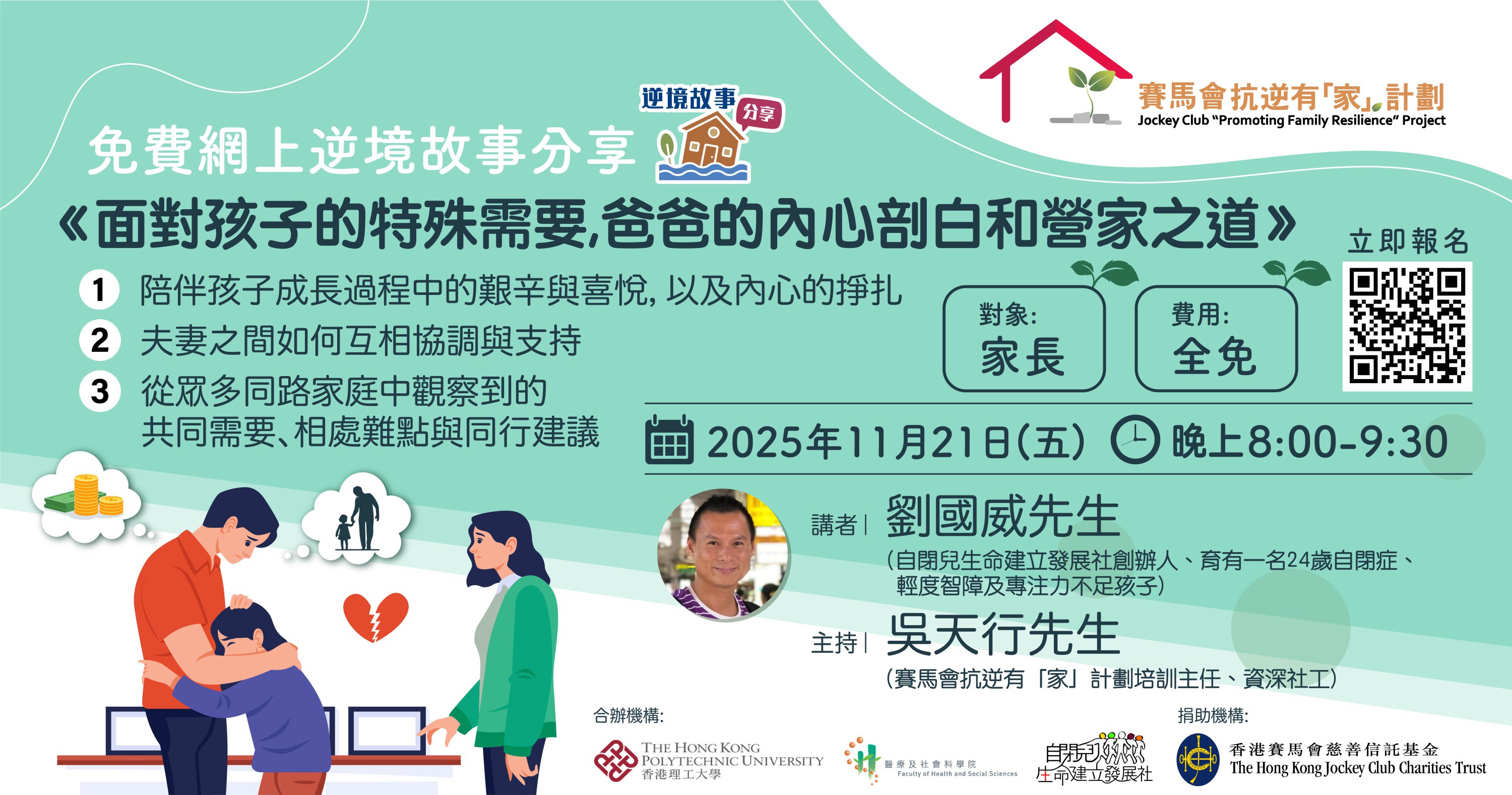 【免費網上逆境故事分享】家庭遇上SEN系列《面對孩子的特殊需要,爸爸的內心剖白和營家之道》