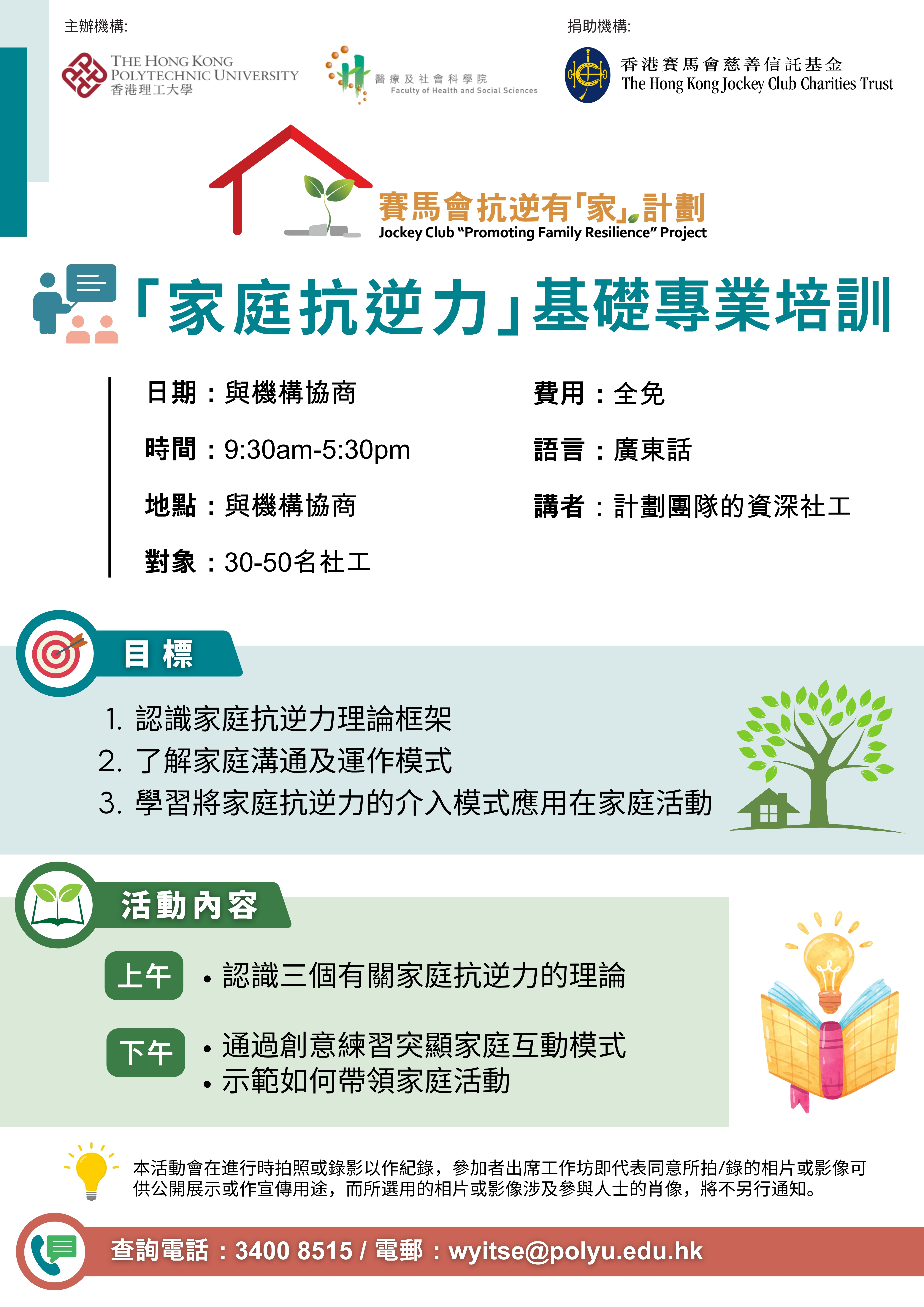 備註: 如有任何查詢,歡迎致電3400 8515或電郵至wyitse@polyu.edu.hk與高級培訓主任謝頴儀姑娘聯絡。